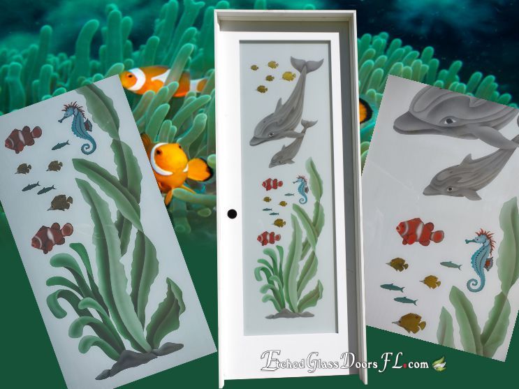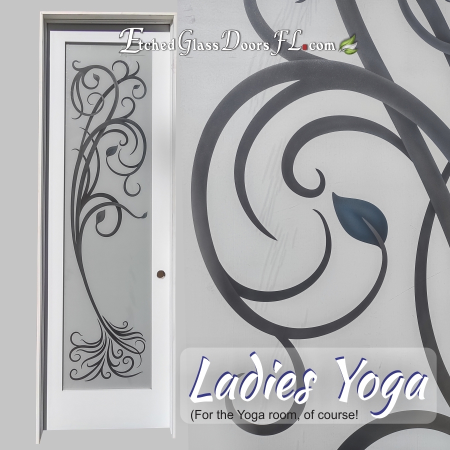 Color on interior doors with etched glass adds extra design to your interior decor. Color can be added to most designs but it does have to be an interior door, and it must be etched before color can be added.
