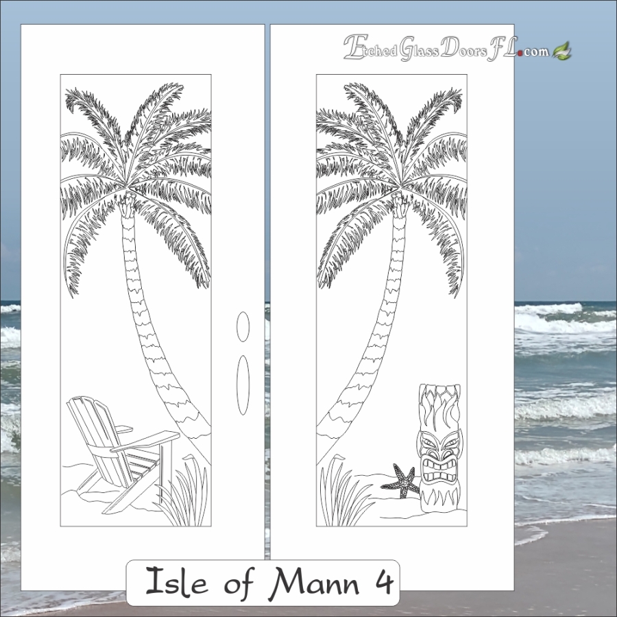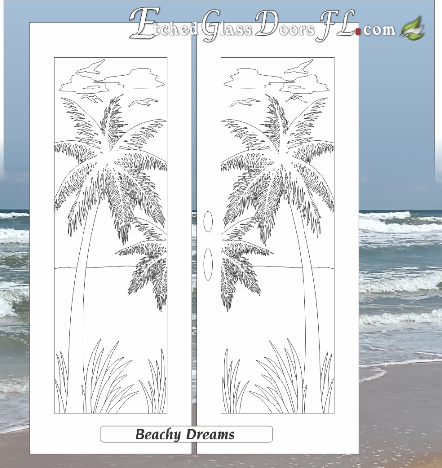 Palm trees with and without the trunk shown are interesting designs for your Florida style home with etched glass doors.  Combine the palms or just the leafs with other tropical foliage and  now you have a unique design that is a piece of art for your home.