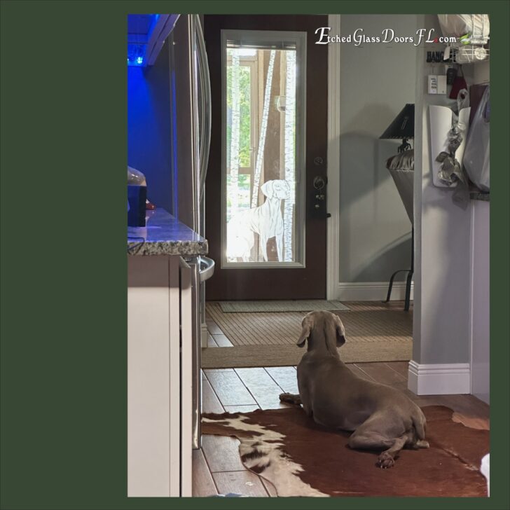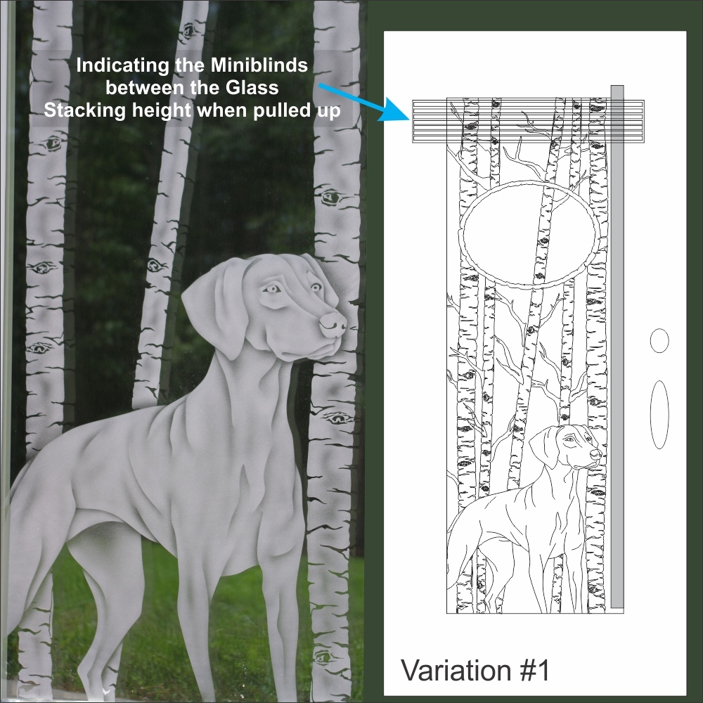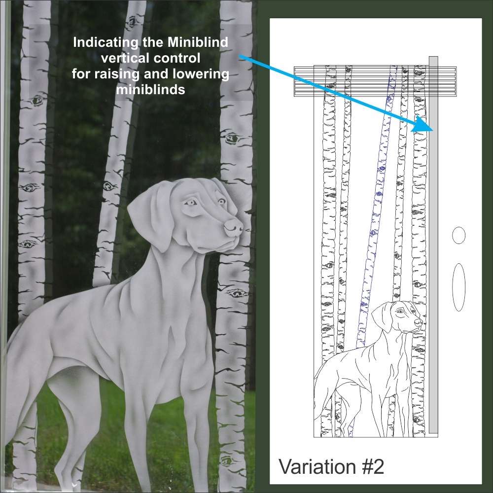When you love your view and love your dogs, what better design than a dog design on a door insert with miniblinds? View when you want it and privacy when you need it. A perfect combination.