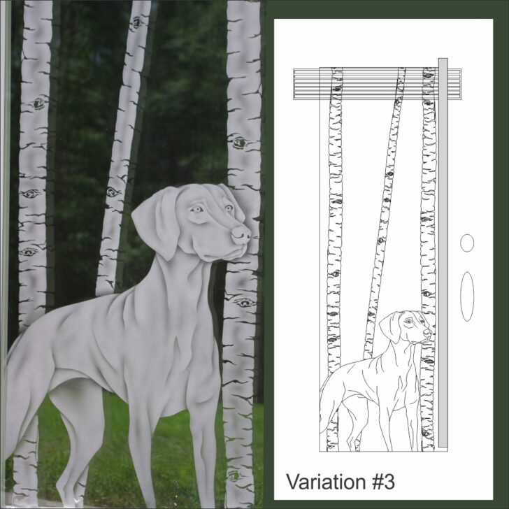This customer loves her Weimaraner breed dogs. We went through several variations making the design simpler. Her concern was that she wanted to be able to see well into the distance without any design obstructions. Well we did achieve that. Take a look at the variations below.
