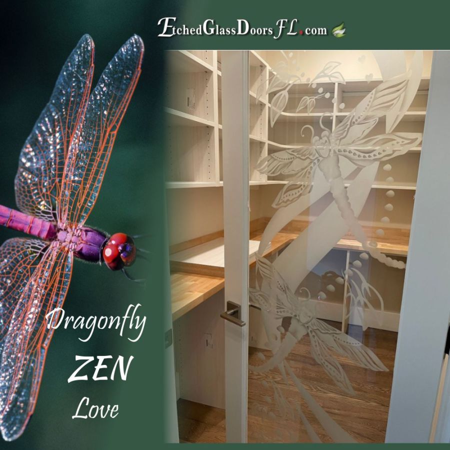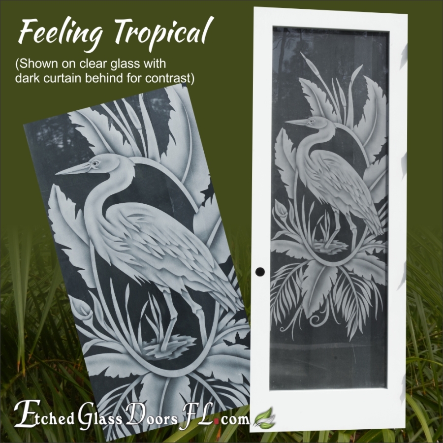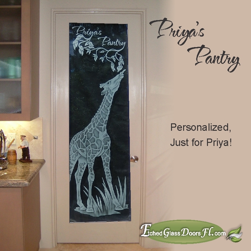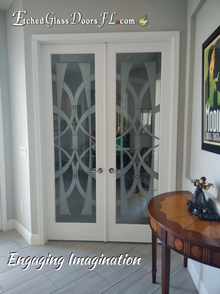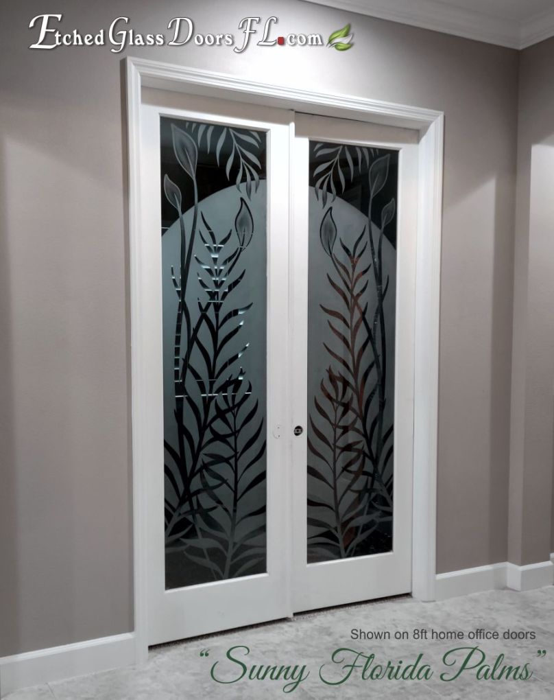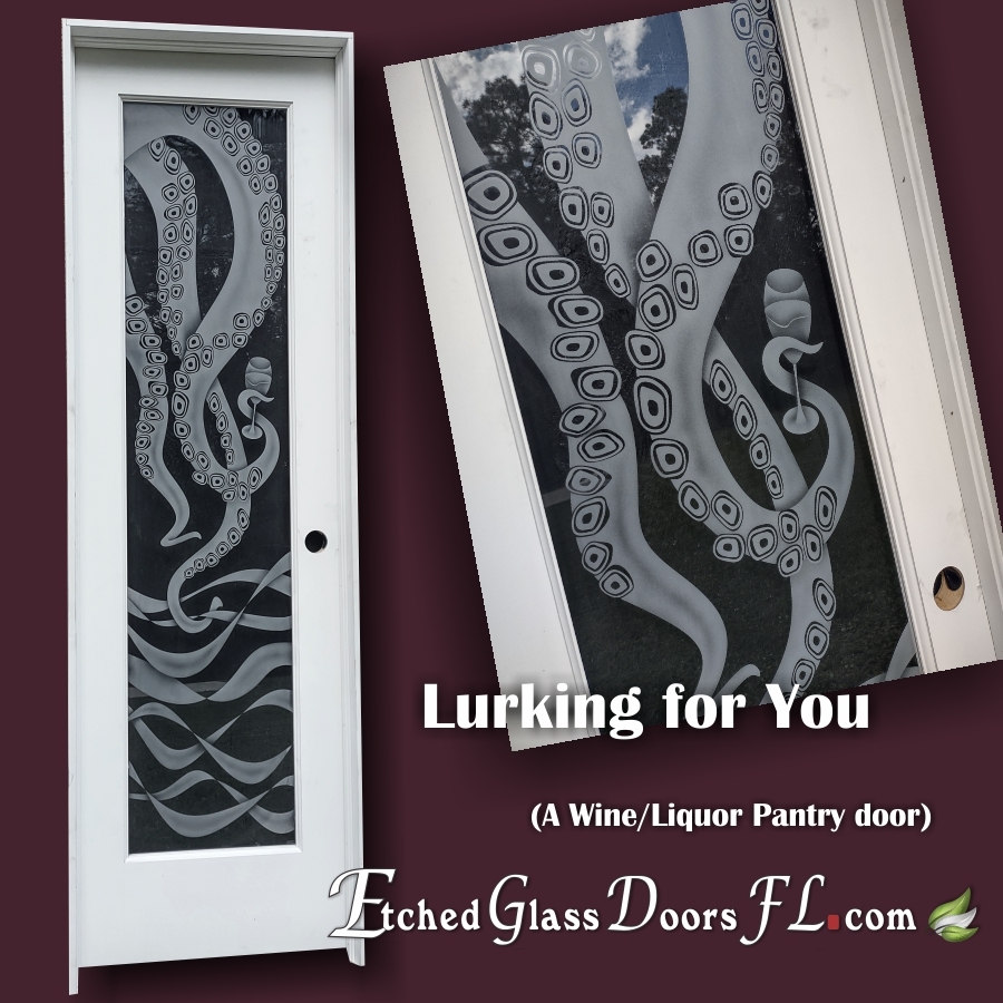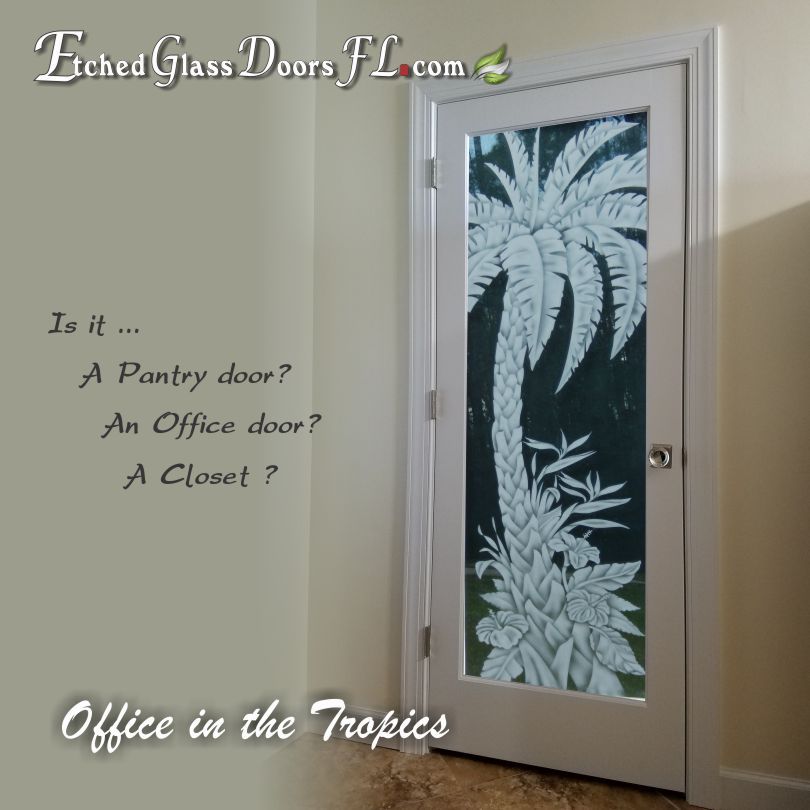 Pantry and Interior doors often use a clear glass background when total privacy or just decoration is desired. If you don’t want to obscure the view, clear glass is perfect. It does show the design nicely and the most detail can be achieved. Home offices, wine rooms, entry doors to busy passageways are common examples.
